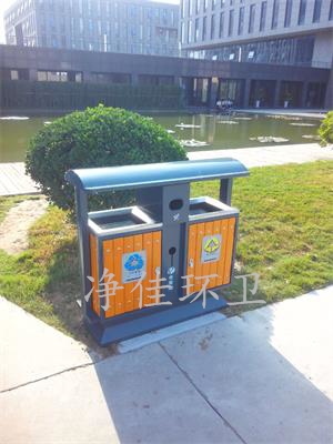 戶外鋼木分類垃圾桶,外形尺寸:1040/400/1000mm,整體板材采用實(shí)際厚度1.0鍍鋅鋼板制作而成,兩側(cè)立柱為1.5厚鍍鋅鋼管,外表做高溫噴塑處理使其外表色澤鮮艷美觀、防腐蝕能力更強(qiáng)等優(yōu)點(diǎn)。木材采用進(jìn)口樟子松經(jīng)過(guò)防腐、打磨、噴漆處理,外表美觀光滑,木材與桶體
